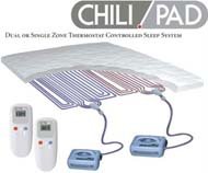 ChiliPad technology uses water instead of air to generate a wide range of in-bed temperature adjustment. Similar to the semi-conductor technology that cools your computer, water passes by the chip and depending on the direction of electron flow the water is cooled or heated. The water flows through soft coils in the mattress pad actively adjusting the temperature of the surface. There is nothing but water flowing through the mattress pad; all temperature change happens in the control unit placed conveniently under the bed. Using advances in semiconductor technology the temperature can change from 460F to 1180F, at a fraction of the cost of air-conditioning. The result is the effect of a cool or warm bed throughout a night's sleep. The motor is virtually silent (under 20 dBa) and has been designed to fit under a standard bed frame. It is controlled in one degree increments with a hand held remote. The benefits of a cooler night's sleep are medically proven to increase the amount of REM sleep during the night. This is a revolution in sleep!